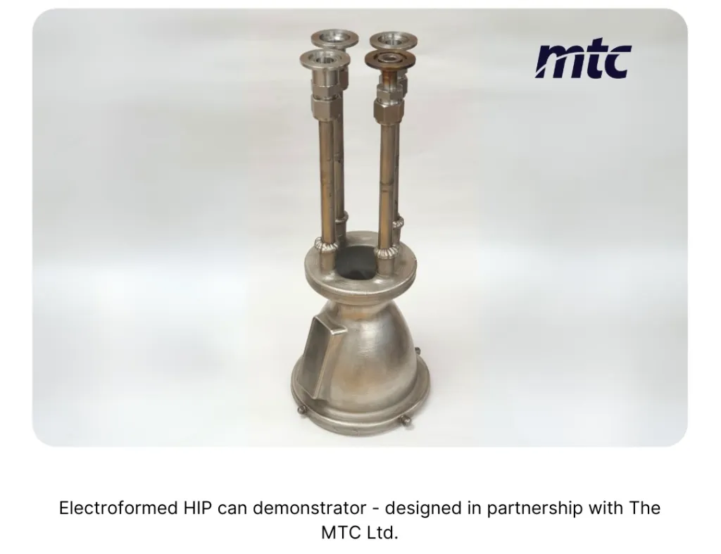 We have combined materials knowledge with proprietary manufacturing methods to produce electroformed Hot Isostatic Pressing (HIP) canisters for net-shape powder metallurgy. Working in partnership with HIP experts at The Manufacturing Technology Centre we are validating our capability to enable more complex HIP canister design, whilst dramatically cutting the cost and lead-time associated with conventional sheet welding methods of fabrication.