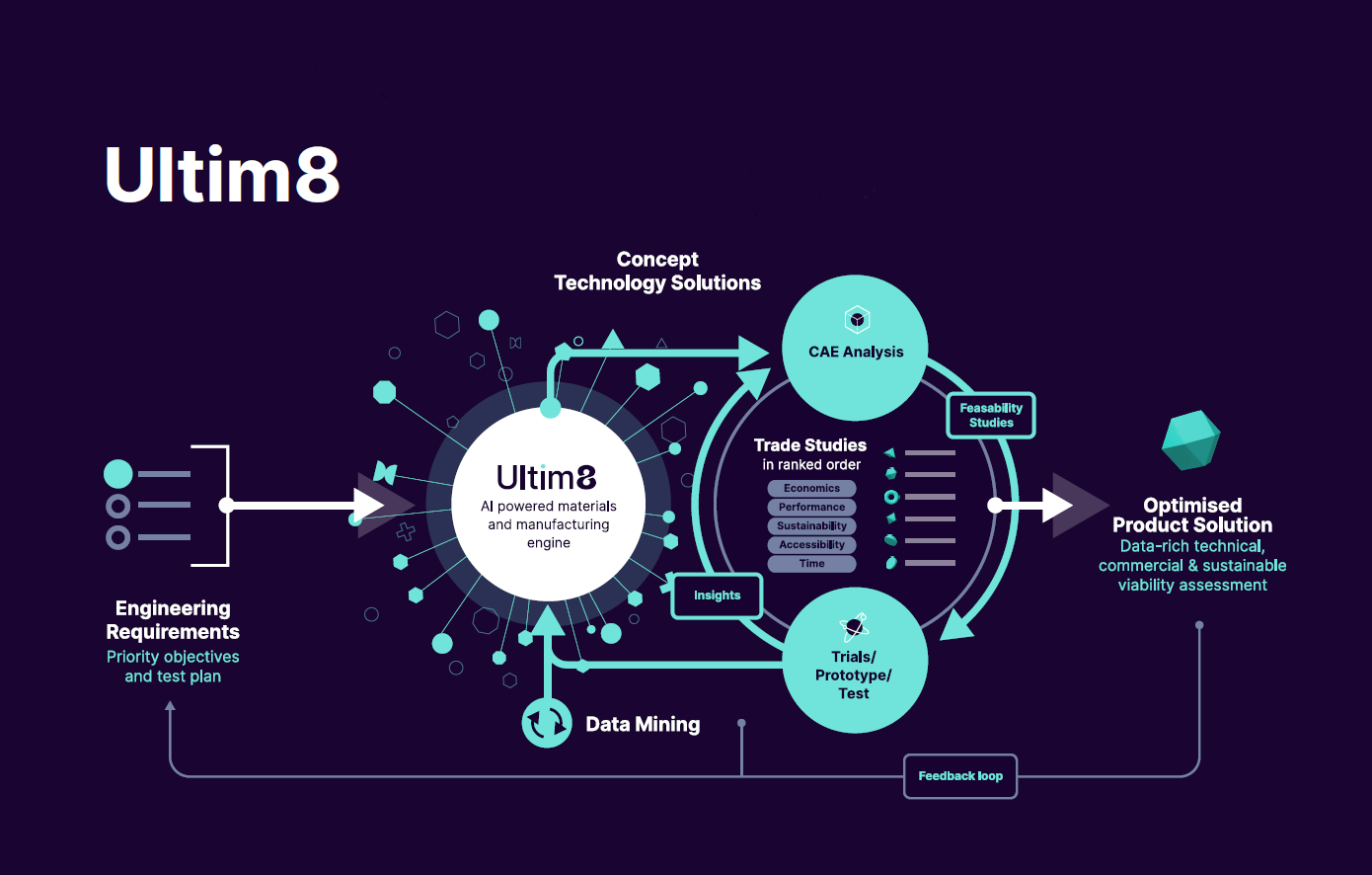 Ultim8 utilises AI technology to generate deep insights for engineering design. Our approach at Ultima Forma is to first understand the technical requirements and from this use our proprietary Ultim8 process to dig into materials and manufacturing capabilities providing deeper insights for concept design.